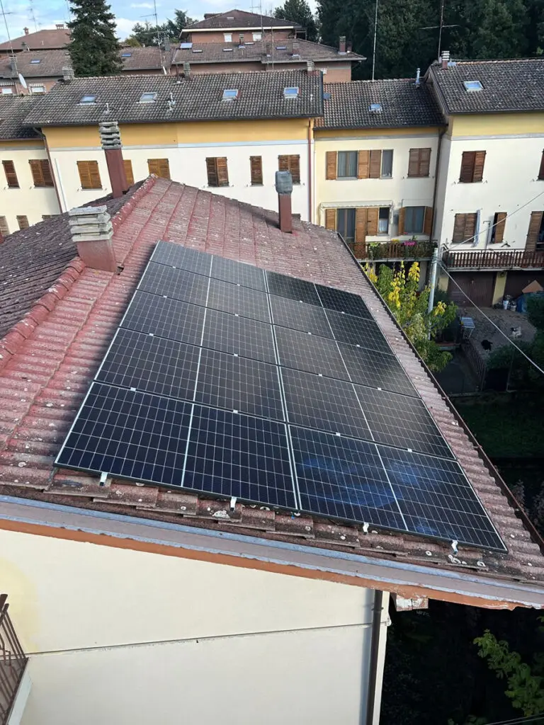 L’impianto fotovoltaico, realizzato da Albori Green Solution a Maranello (MO), ha una potenza complessiva di 5 kWp e utilizza 11 pannelli solari Trina Solar da 455 Wp. L’energia prodotta viene gestita da un inverter Huawei da 4 kW con garanzia estesa a 20 anni e accumulata in una batteria Huawei.
